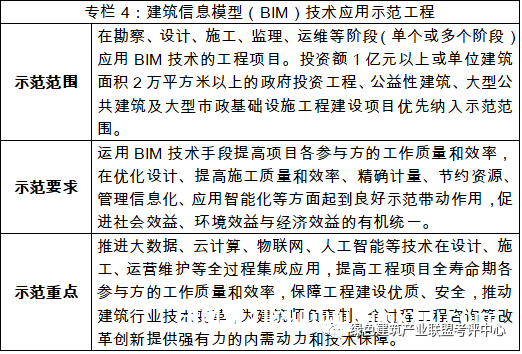 1.大力推广建筑信息模型技术。开展BIM技术应用示范工作,加快推进BIM技术在新型建筑工业化全寿命期的一体化集成应用,实现设计、采购、生产、建造、交付、运行维护等阶段的信息互联互通和交互共享。充分利用社会资源,推动建设基于BIM技术的标准化部品部件库。推进城市信息模型(CIM)平台建设,推进BIM技术与CIM平台的融通联动,提高信息化监管能力,提高建筑行业全产业链资源配置效率。加大BIM技术推广应用政策研究,将BIM技术集成运用作为骨干企业和专精特新企业基础条件,对于应用BIM技术增加的成本,合理纳入工程造价。