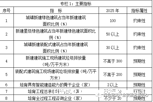 --新建建筑施工现场建筑垃圾(不包括工程渣土、工程泥浆)排放量每万平方米不高于300吨,装配式建筑施工现场建筑垃圾(不包括工程渣土、工程泥浆)排放量每万平方米不高于200吨。