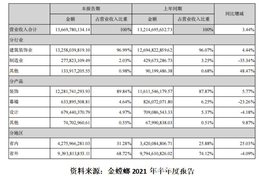 25.46%。为了应对房地产政策调控给公装业务带来的风险,金螳螂上半年优化了订单结构,截至 2021 年 2 季度末,已签约未完工的订单金额为