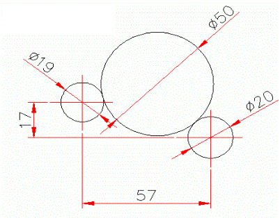 第三步 利用相切、相切、半径绘制φ50的圆