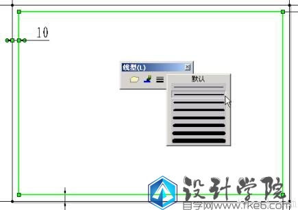 8. 设置线粗 选择内侧代表图框的矩形,从“线型”工具栏中定义四条直线的线粗为“正常”或其他类型粗线,如图6所示。