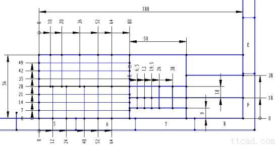 11. 图幅分区 如图9所示,绘制直线,并在图纸中添加注释(A、B、C…和1、2、3…)建立图框分区。
