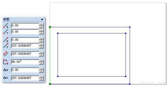 5. 左边界 如图4所示,选择外侧矩形的左侧边,在PropertyManager的【参数】选项组中确定该直线起点的坐标点位置(X=0,Y=0)。