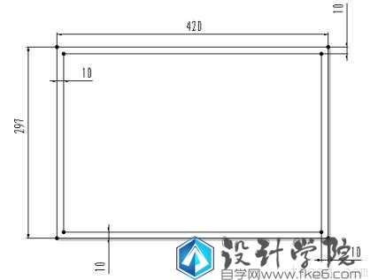 4. 图纸边框 如图3所示,绘制两个矩形分别代表图纸的纸边界线和图框线,在下面的步骤中将通过几何关系和尺寸确定两个矩形的大小和位置。