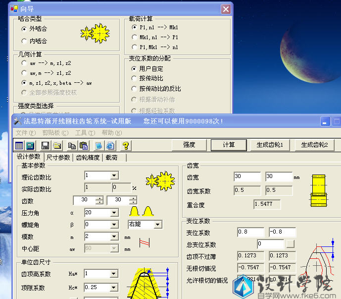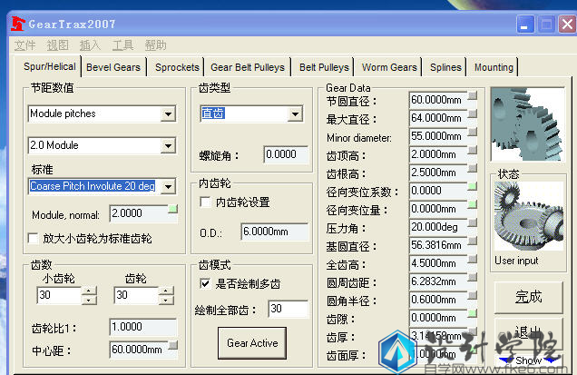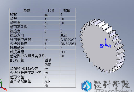 齿轮副设计工具,精确齿形,可加入变位、齿宽等,可进行强度校核和生成检验公差值,同时生成齿轮设计报告,是齿轮三维设计的理想工具。(图m2,Z30,x0.8)