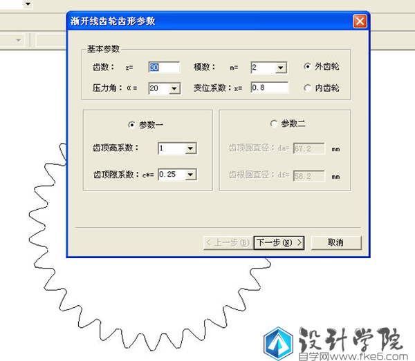准确的齿形和变位,可多次引入生成多联齿轮,但操作麻烦。(图m2,Z30,x0.8)
