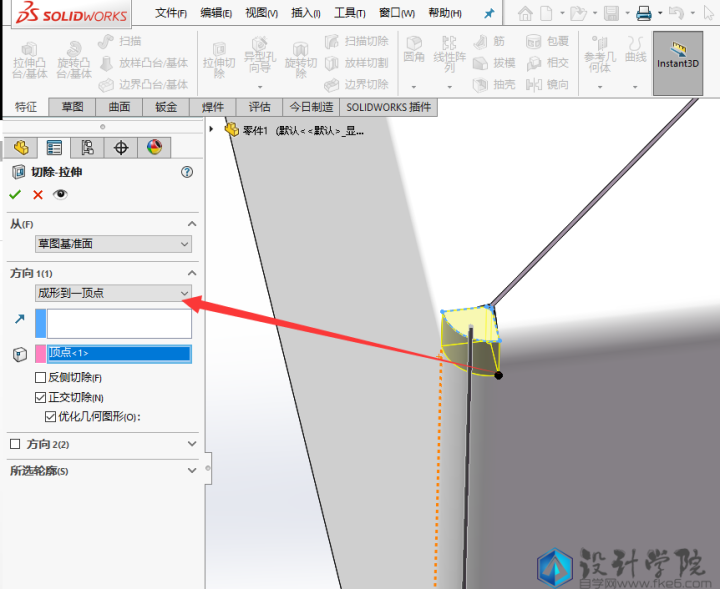 拉伸切除的条件选成形到一顶点,同样也能切除一样的效果。