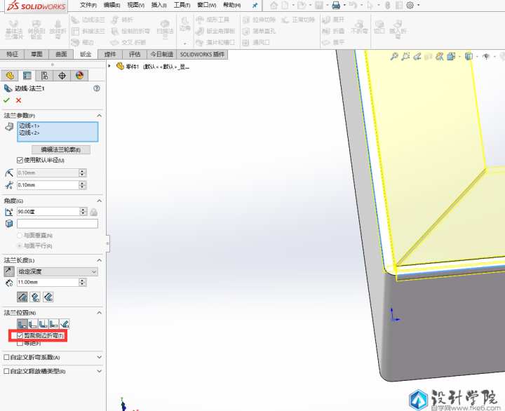 第1种:最推荐的一种,在做边线法兰的时候,勾选剪裁侧边折弯选项。即可自动裁剪掉多出来的边角。