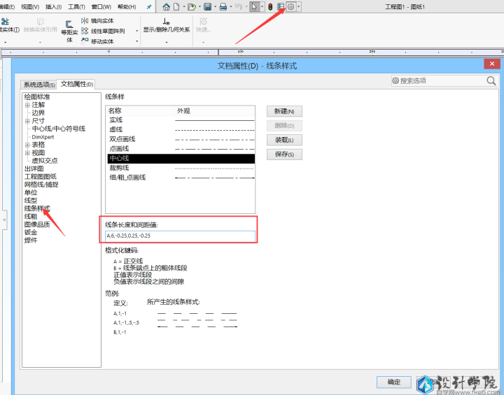 也有很多小伙伴反应solidworks做工程图的时候中心线不是很明显,间距太大了看不出来,其实这个都是可以去调整的,我们来看一下。首先还是要进入工程图环境。然后打开菜单栏上面的选项,选择文档选项,找到线条样式,然后选择需要更改的线型,在下面去更改长度和间距值,调整到合适的尺寸就行了。