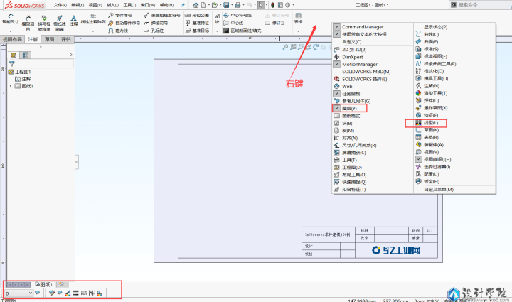 Solidworks中的图层是指在工程图中每一个线条所显示的线色,线粗,和线条样式。我们可以通过设置图层来改变线条的显示状态。那如何设置呢?