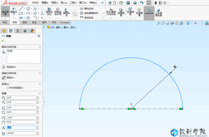 第2步,在前视准面上继续绘制R5的圆弧,退出草图。