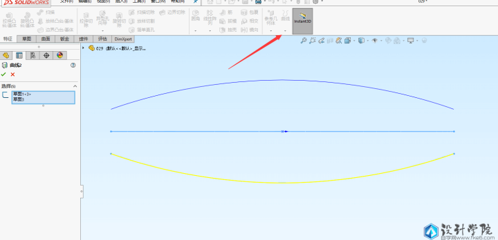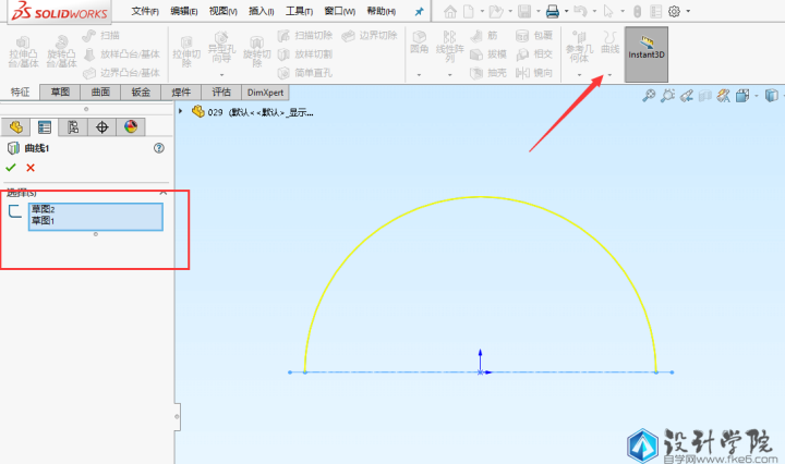 第5步,再次点击特征里面的曲线,还是投影曲线,再做一次,这次草图我们选择第2步的圆弧,还有第3步引用的两个草图。