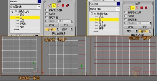 此时我们将模型的顶部进行平面化,我们给模型一个“编辑多边形”命令,选择顶部所有的点,找到平面化命令点击“Z”。如下图: