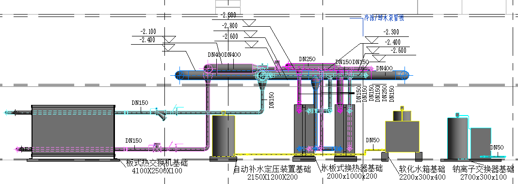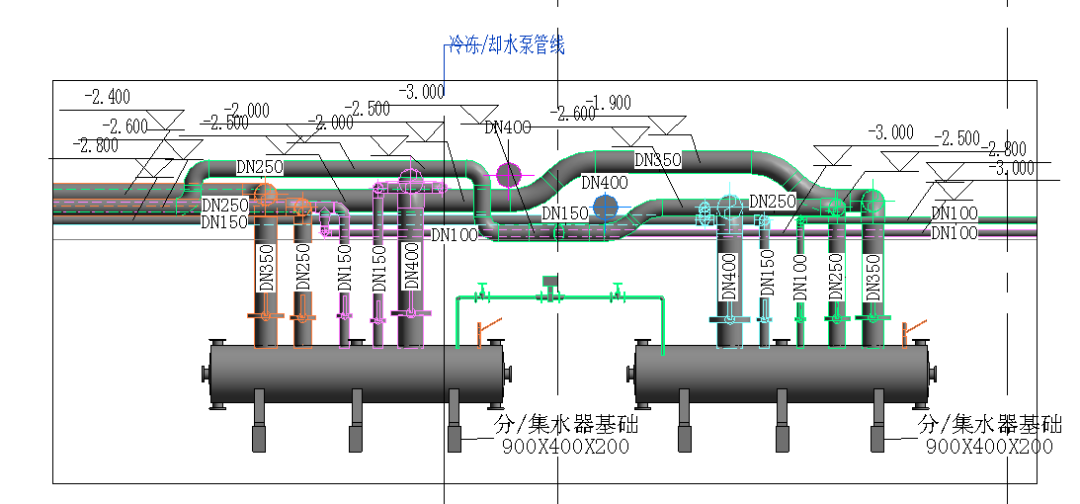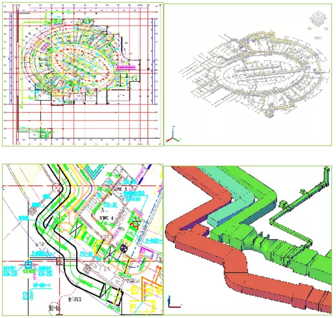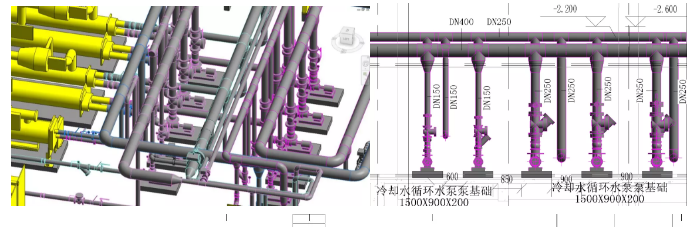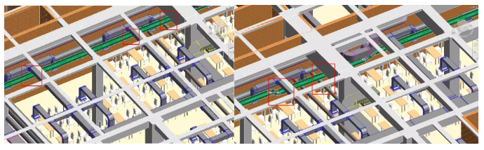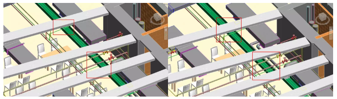 解决:采用于BIM专业软件可在项目开始阶段,进行机电专业的深化设计,在综合过程中满足各种国家规范要求,满足系统使用要求,尽量避免多余管件,减小系统阻力,考虑预留足够的检修空间,考虑实际管件的采购及制作, 考虑支吊架的制作及安装。