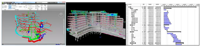 有了BIM模型即可实现四维模拟。通过它不仅可以直观地体现施工的界面、顺序,从而使总承包与各专业施工之间的施工协调变得清晰明了;通过四维施工模拟与施工组织方案的结合,能够使设备材料进场,劳动力配置,机械排版等各项工作的安排变得最为有效、经济。设备吊装方案及一些重要的施工步骤,现在都可以用四维模拟的方式很明确地向业主、审批方展示出来。