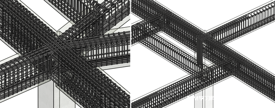 在梁柱的复杂节点,针对钢筋较多、梁柱节点空间有限的情况,提前在Revit中进行复杂节点的钢筋排布设计,有效地规避现场钢筋绑扎时可能遇到的问题,方便现场施工,缩短工期。