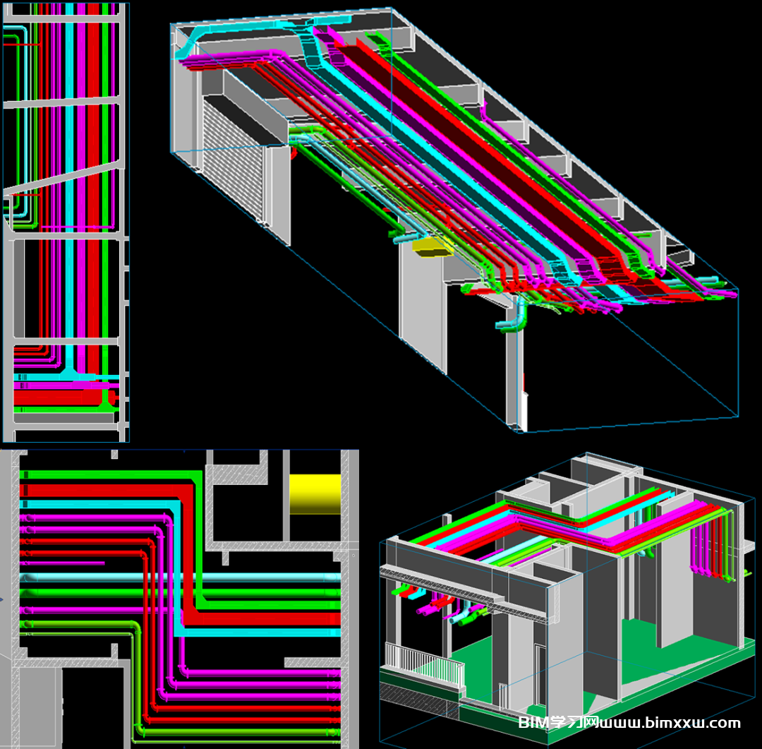 本项目管线复杂,专业综合度高。通过BIM技术应用,可基于各专业BIM模型,检查机电专业错、漏、碰、缺的问题,优化机电管线布置方案,提前控制管线密集部位的返工风险,避免将设计阶段的不合理问题遗留到施工阶段。