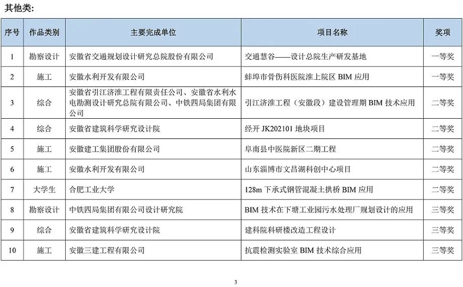 附件:“安徽建工杯”安徽省BIM技术应用大赛拟获奖项目名单 公示